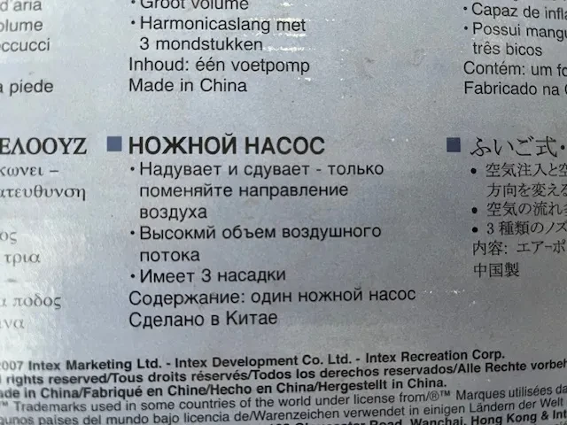 Насос ножной INTEX арт. 68610 двойного действия (надутие/сдутие) для бассейнов, лодок, матрасов, игрушек.